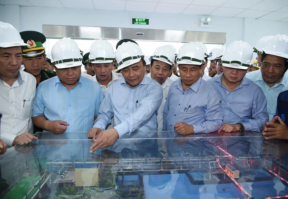 Thủ tướng thị sát tại nhà điều hành xử lý nước thải. Ảnh: Chinhphu.vn
