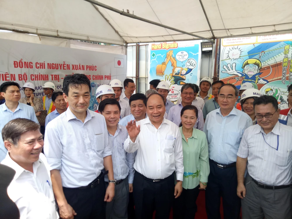 Trước đó, Thủ tướng đã đi thị sát công trình thi công nhà ga trước chợ Bến Thành và nhà ga nhà hát TP.HCM, đồng thời ông Phúc cũng đi thị sát đoạn ngầm phía dưới công trình đang được thi công của tuyến metro này.