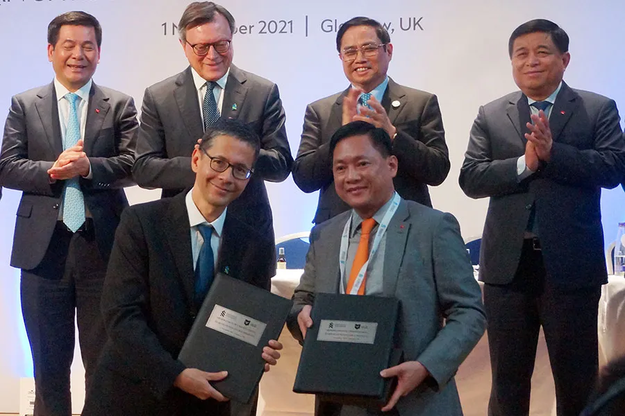 Thủ tướng cũng chứng kiến lễ trao các biên bản ghi nhớ với tổng giá trị 8,5 tỉ USD cho ba doanh nghiệp Việt Nam nhằm hỗ trợ các dự án phát triển bền vững.