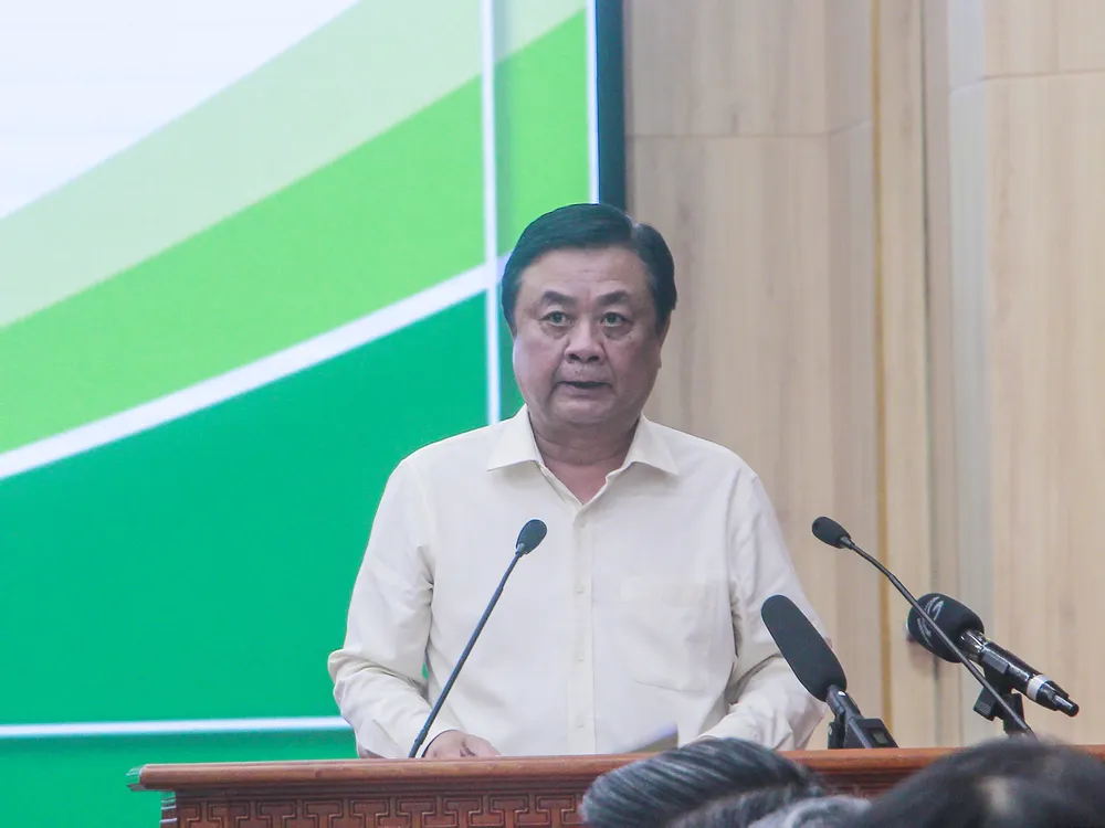Ông Lê Minh Hoan, Bộ trưởng Bộ NN&PTNT phát biểu tại Hội nghị húc đẩy phát triển nông nghiệp ĐBSCL chủ động thích ứng với BĐKH. Ảnh: CHÂU ANH