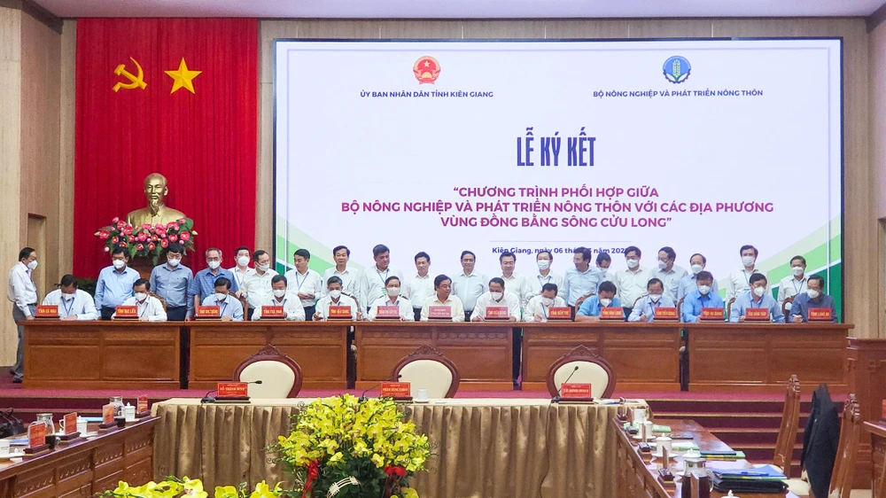 Dịp này, trước sự chứng kiến của Thủ tướng Phạm Minh Chính là lãnh đạo các Bộ ngành Trung ương, Bộ NN&PTNT đã tiến hành ký kết chương trình phối hợp giữa Bộ với UBND các tỉnh, thành vùng ĐBSCL. Theo đó, Bộ sẽ cùng các địa phương tập trung triển khai, thực hiện hiệu quả những nhiệm vụ trọng tâm trong chiến lược phát triển nông nghiệp và nông thôn, kế hoạch cơ cấu lại ngành, chương trình tổng thể phát triển nông nghiệp vùng ĐBSCL, chương trình xây dựng nông thôn mới... Thời gian thực hiện trong giai đoạn 2021-2025 và điều chỉnh, bổ sung để triển khai thực hiện đến năm 2030.