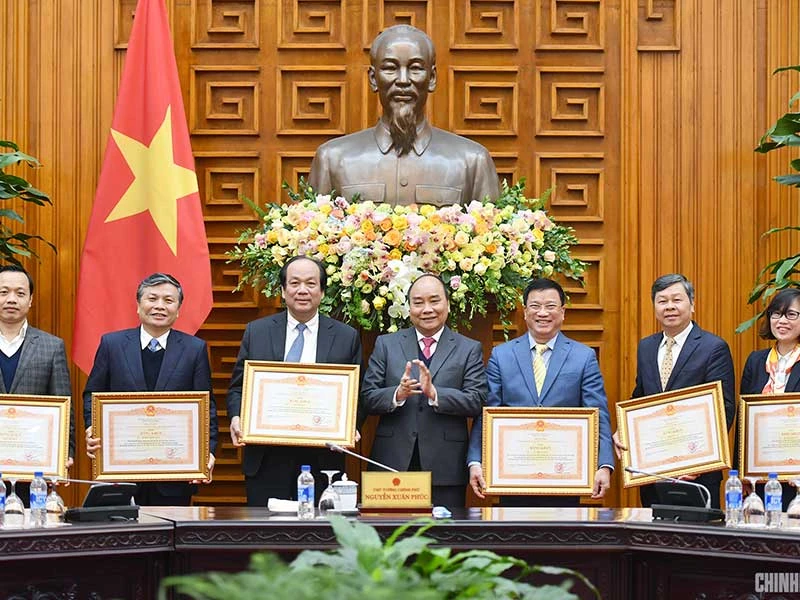 Thủ tướng Nguyễn Xuân Phúc trao bằng khen cho các thành viên và nguyên thành viên Tổ công tác. Ảnh: plo.vn