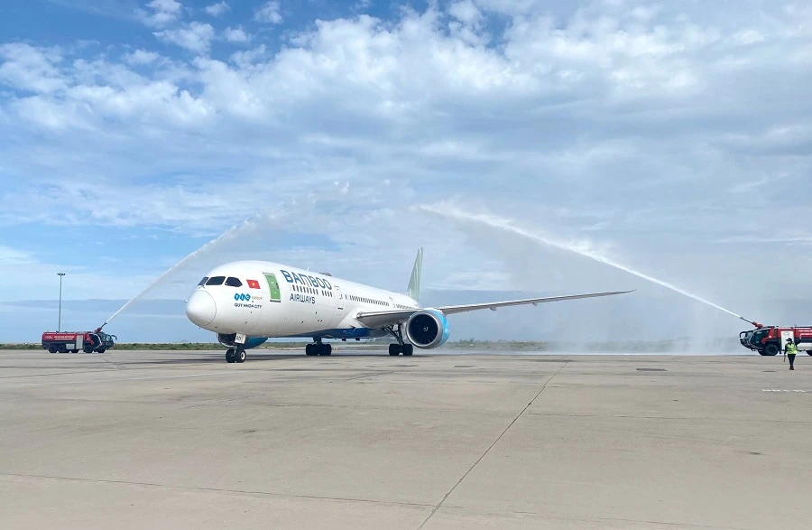 | Bamboo Airways đón chuyến bay chở khách quốc tế có hộ chiếu vaccine đến Khánh Hòa Lúc 14 giờ 15 phút ngày 25-11, chuyến bay mang số hiệu QH9451 từ Seoul (Hàn Quốc) - Nha Trang chở theo những du khách quốc tế có hộ chiếu vaccine đã hạ cánh tại Sân bay quốc tế Cam Ranh - Khánh Hòa. Đây là hoạt động mở đầu cho loạt chuyến bay Bamboo Airways khai thác theo kế hoạch thí điểm đón khách quốc tế cuối năm 2021 của Bộ GTVT.