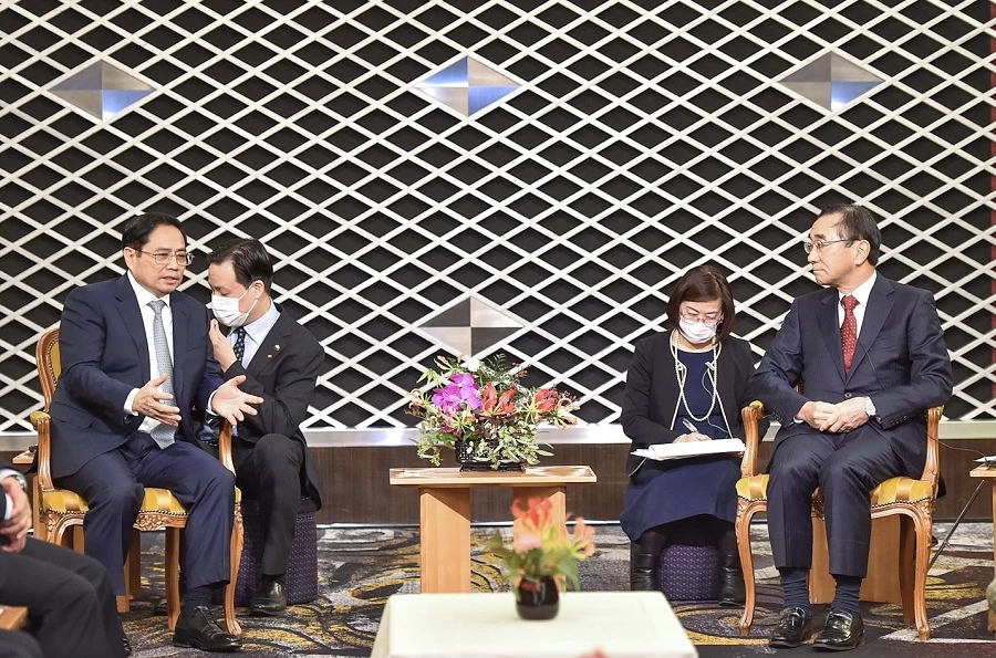 Ngày 25-11, trong chuyến thăm tại Nhật Bản, Thủ tướng Phạm Minh Chính đã tiếp ông Nobuhiko Sasaki, Chủ tịch Tổ chức Xúc tiến thương mại Nhật Bản (JETRO) và lãnh đạo nhiều tập đoàn, doanh nghiệp, ngân hàng lớn của Nhật.