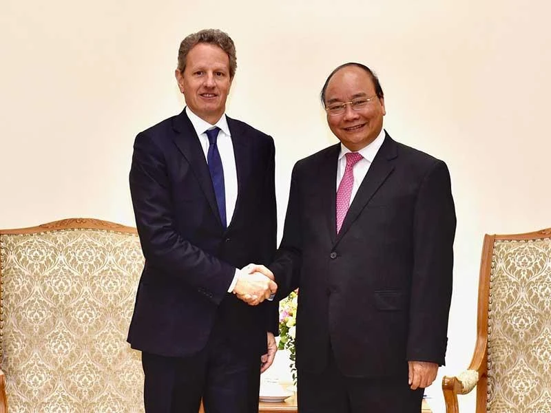 Thủ tướng Nguyễn Xuân Phúc tiếp ông Timothy Geithner, Chủ tịch Quỹ Warburg Pincus. Ảnh: VGP/NHẬT BẮC