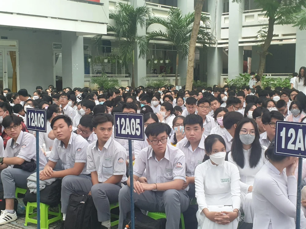 Trước những chia sẻ của ông Phạm Chánh Trực và bà Quách Thu Nguyệt, trong vai trò là một bí thư Đoàn trường, bạn Trịnh Gia Phát cảm thấy tự hào khi được Thành đoàn chọn để đại diện cho hơn 1700 học sinh của trường để bày tỏ niềm hạnh phúc của bản thân khi được học tập tại ngôi trường mang tên Võ Văn Kiệt.
