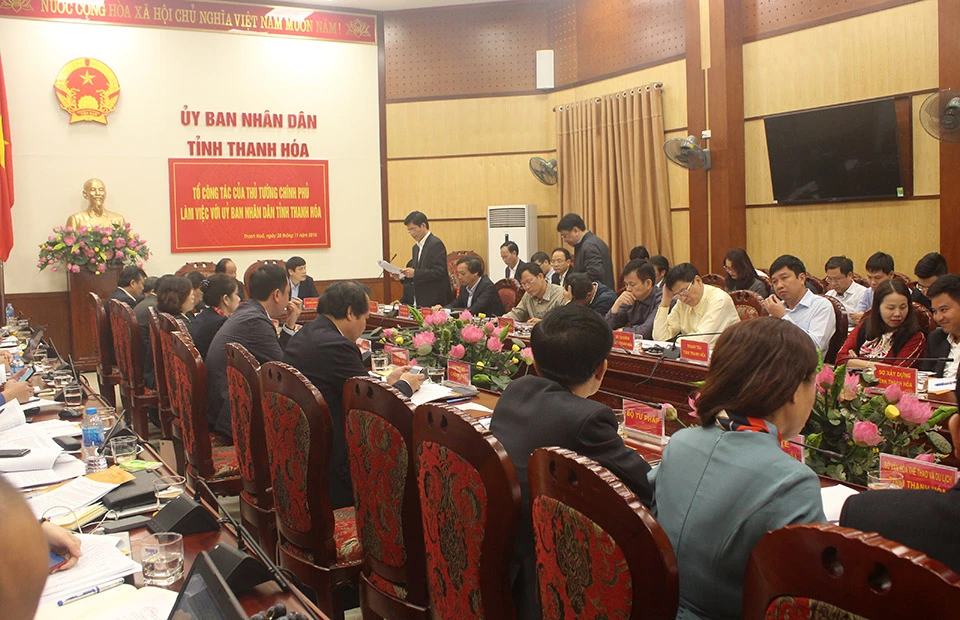 Tại buổi làm việc, UBND tỉnh Thanh Hóa báo cáo tình hình triển khai thực hiện các nhiệm vụ do Chính phủ, Thủ tướng Chính phủ giao cho tỉnh. Trong đó, các nội dung chính là công tác cổ phần hóa, thoái vốn; vấn đề cải cách thủ tục hành chính; triển khai cơ chế một cửa, một cửa liên thông; vấn đề chuyển đổi cơ cấu kinh tế.