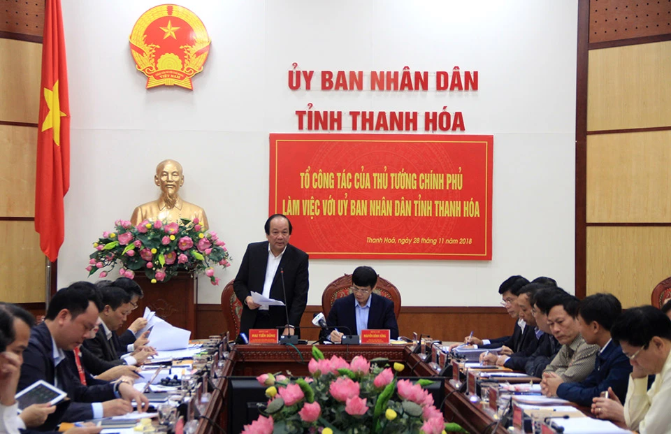 Sáng 28-11, Bộ trưởng, Chủ nhiệm VPCP Mai Tiến Dũng dẫn đầu Tổ công tác của Thủ tướng Chính phủ làm việc với UBND tỉnh Thanh Hóa.
