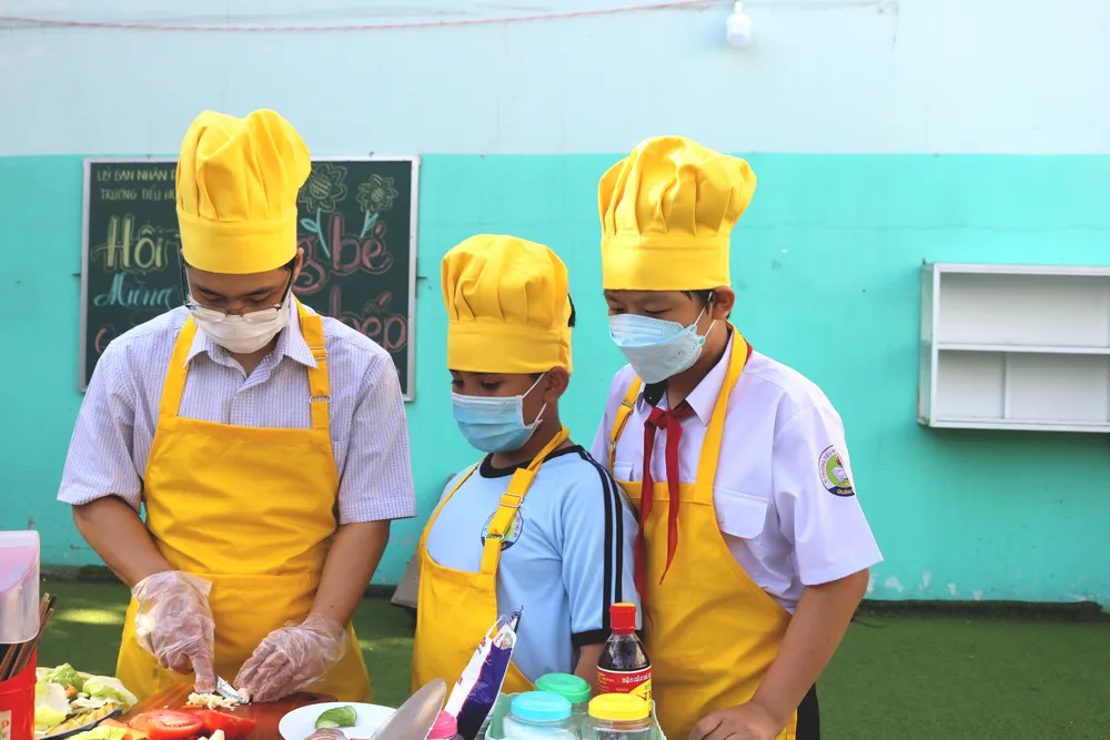 Tuy còn nhỏ tuổi nhưng ở nhà em Lê Gia Bảo lớp 4/5 trường Tiểu học Lê Văn Thọ đã biết vào bếp phụ giúp mẹ nấu ăn. Em hào hứng cho biết: "Khi được tham gia hoạt động này con thấy rất là vui, thoải mái. Con thấy các thầy nấu đồ ăn rất là ngon".