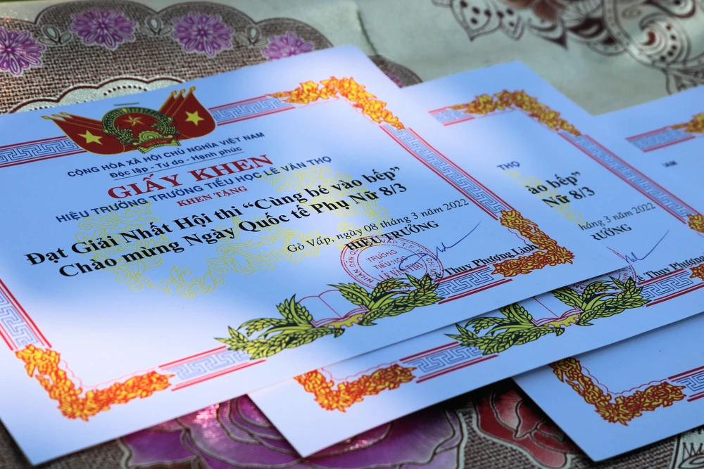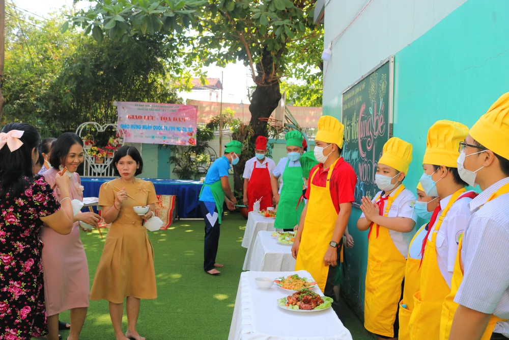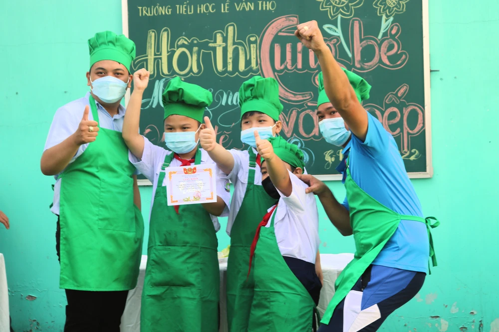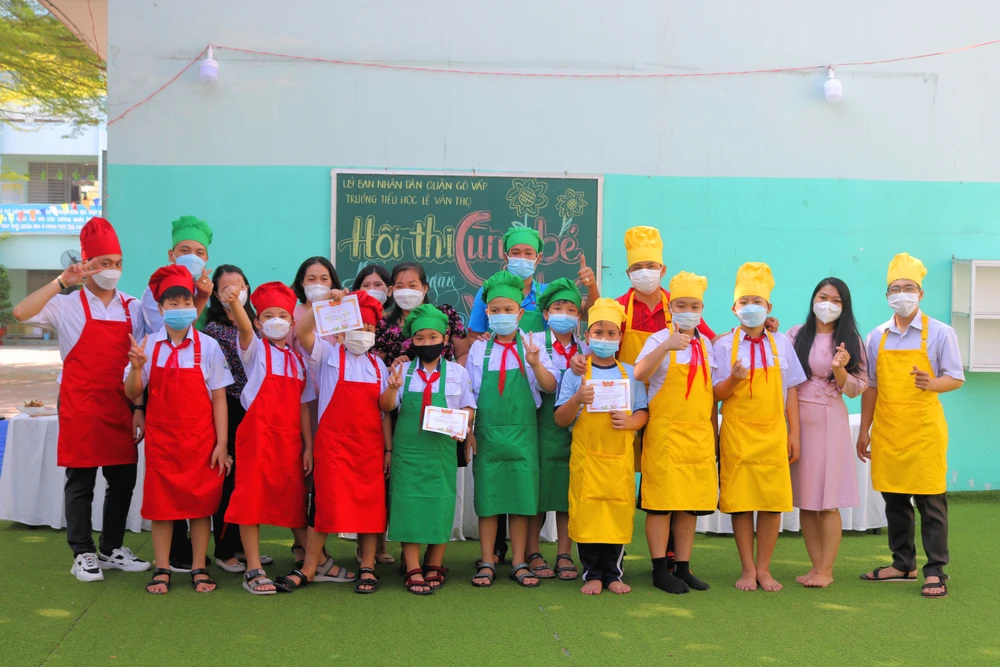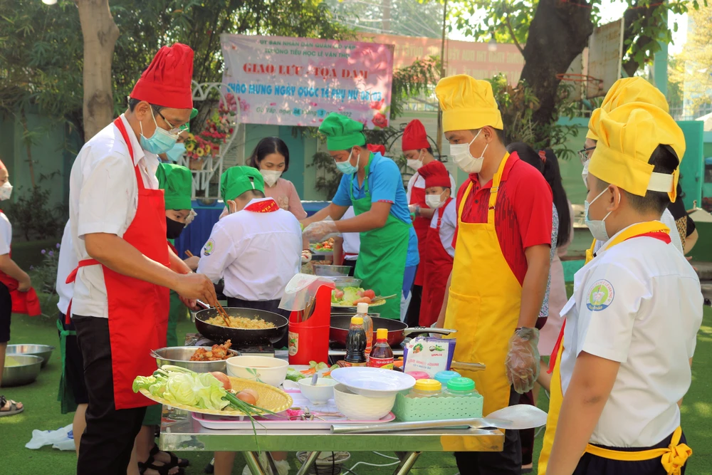 Hòa cùng không khí chào mừng Quốc tế Phụ nữ, sáng 8-3, Trường Tiểu học Lê Văn Thọ (quận Gò Vấp, TP HCM) tổ chức hội thi "Cùng bé vào bếp".