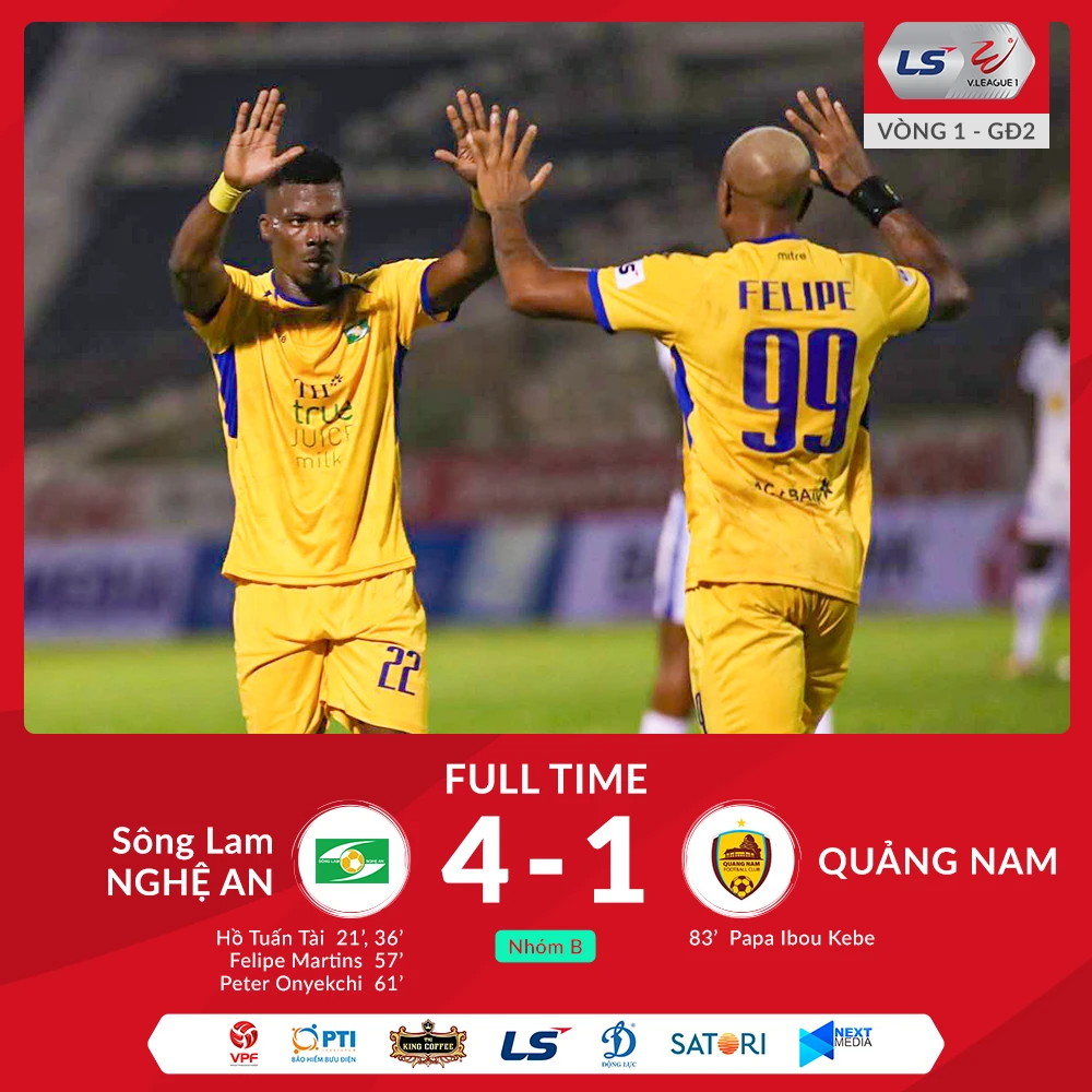 Trận đấu cuối cùng của vòng 1 giai đoạn 2 V-League 2020 vừa kết thúc, theo đó đội chót bảng Quảng Nam đã bị chủ nhà SL Nghệ An đánh bại 4-1.