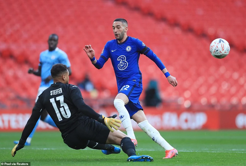 Ngay sau bàn thắng đưa Chelsea dẫn trước 1-0, Ziyech tiếp tục có cơ hội đối mặt với thủ môn Steffen ở phút 59 từ pha phất bóng ở phần sân nhà của Chilwell. Tuy nhiên cú sút của Ziyech không thể đánh bại được thủ môn của Man. City.