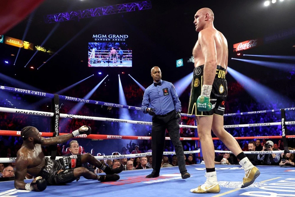 Wilder liên tục gục ngã trước những cú ra đòn uy lực từ Tyson Fury.
