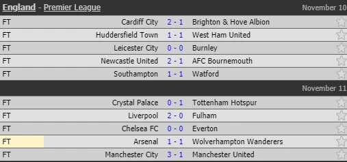 Ở trận đấu cùng giờ, Arsenal đã bị Wolverhampton Wanderers cầm chân với tỉ số 1-1. Điều đáng nói, phải đợi đến phút 86, Mkhitaryan với ghi bàn giành lại 1 điểm cho Arsenal.