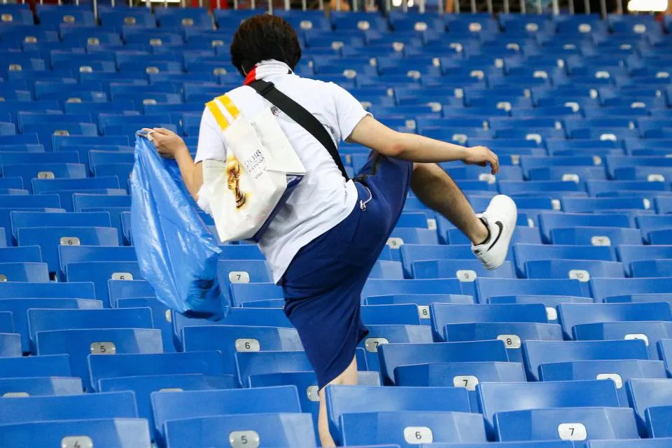 Trên khán đài, các CĐV Nhật Bản cũng thể hiện tinh thần Fair Play khi cùng nhau đi dọn rác sau mỗi trận đấu của Nhật Bản từ đầu VCK World Cup đến giờ. Khác với những lần trước, lần này, người Nhật dọn rác trong nỗi đau vì đội nhà thua trận tức tưởi.