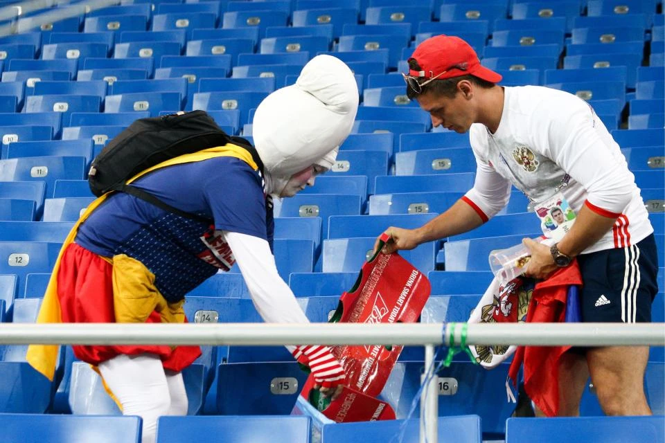 Khi đội nhà thua trận mà lại thua theo cách nghiệt ngã như thế, sẽ chẳng ai còn tâm trí làm bất cứ việc gì. Vậy mà trong nỗi đau đó, người Nhật vẫn cùng nhau đi dọn rác, làm sạch cả sân vận động Rostov Arena.