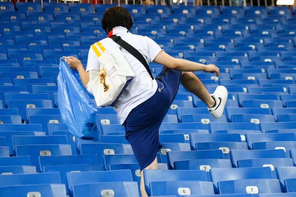 Người Nhật hành động tự nguyện và cực kỳ có trách nhiệm, bởi trong tất cả các trận đấu của Nhật, các CĐV Nhật cũng dọn cho sạch rác trên khán đài rồi mới rời sân.