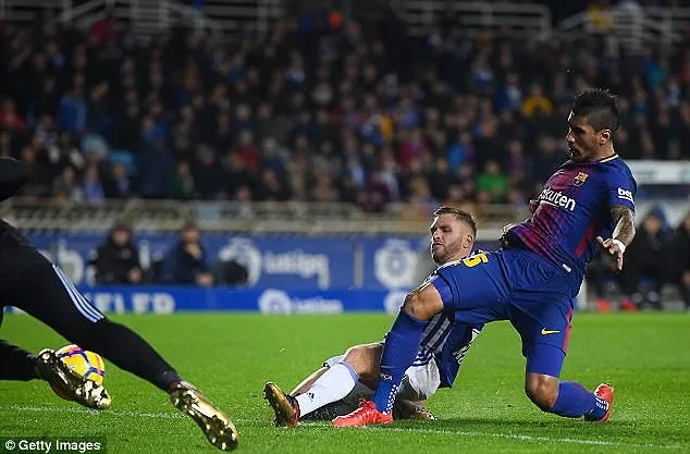 Đến phút 28, Willian Jose lại khiến mành lưới của Barcelona một lần nữa rung lên sau pha dứt điểm nhanh ngoài vòng cấm nhưng trọng tài không công nhận bàn thắng. Vị trọng tài chính cho rằng trước đó cầu thủ Sociedad đã phạm lỗi với Rakitic nhưng đây là nhận định sai lầm vì Rakitic tự ngã chứ không có ai tác động đến anh.