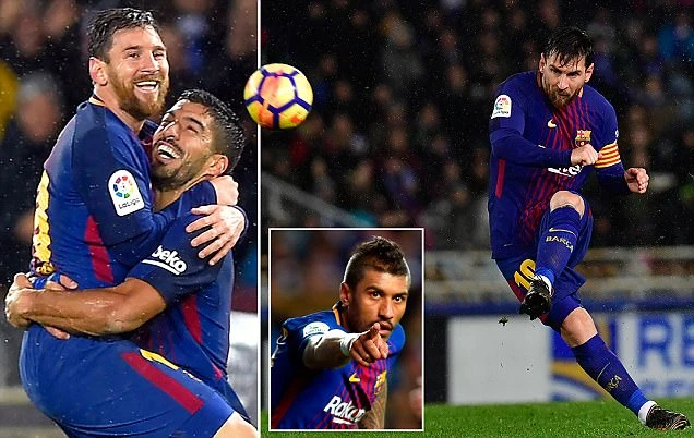Bàn thắng: Paulinho 39, L. Suarez 50, 71, Messi 85.
