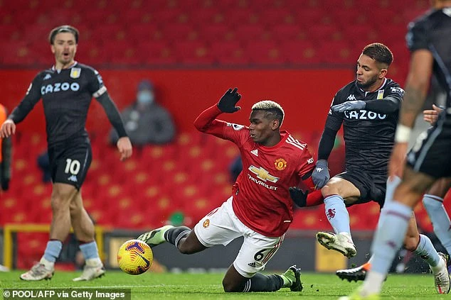 Trong một tình huống đi bóng, Paul Pogba ngã trong vòng cấm Aston Villa sau pha va chạm với Douglas Luiz. Trọng tài Michael Oliver ngay lập tức chỉ tay vào chấm 11m trong sự phản đối của cầu thủ Aston Villa.