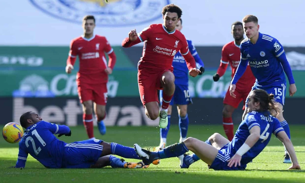 Ba phút sau, từ tình huống phất bóng phản công của Leicester, thủ môn Alisson và trung vệ Kabak không hiểu ý nhau tạo đều kiện cho Vardy ghi bàn vào lưới trống, giúp đội chủ nhà lội ngược dẫn 2-1.