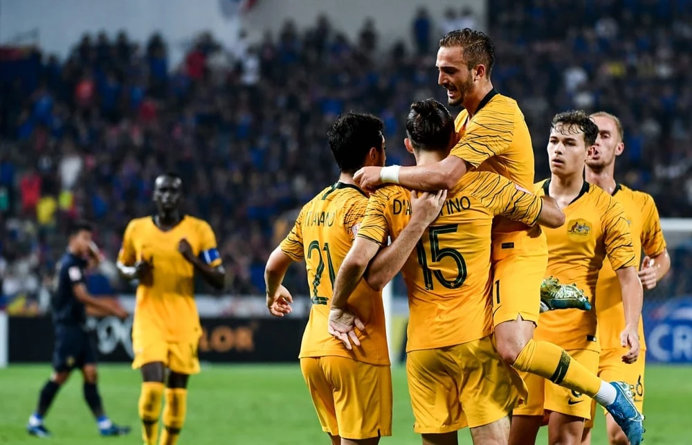 Các cầu thủ Úc ăn mừng chiến thắng. Ảnh: AFC