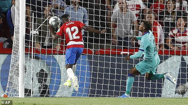 Tuy nhiên, “gã khổng lồ” xứ Catalonia nhận cú sốc khi phải nhận bàn thua sớm khi bóng vừa lăn được 2 phút. Từ đường phát bóng bên sân nhà của thủ môn bên phía Granada, hậu vệ trái của đội khách Firpo mắc sai lầm khi để mất bóng. Tiền đạo Antonio Puertas xâm nhập vòng cấm rồi dứt điểm kiểu nửa chuyền nửa tạt, đưa bóng đi vào góc xa khung thành. Ramon Azeez trong tình huống tham gia tấn công dễ dàng đánh đầu cận thành, mở tỉ số cho đội chủ nhà.