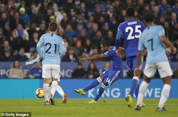 Phút 81 Man. City không ngờ phải nhận bàn thua thứ hai, xuất phát từ tình huống phạt góc bóng tìm đến đúng vị trí của Ricardo Pereira. Hậu vệ của Leicester City nã đại bác chính xác giúp đội nhà vươn lên dẫn 2-1.
