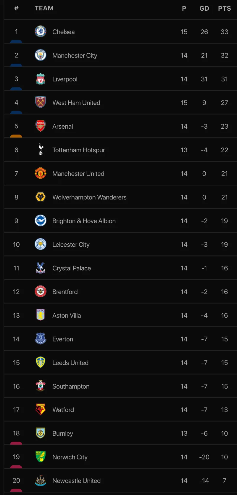 Đánh bại Chelsea với tỷ số 3-2, West Ham giữ vững vị trí thứ tư với 27 điểm sau 15 vòng đấu. Trong khi đó, Chelsea khó giữ được ngôi đầu Premier League. Chỉ cần Man. City thắng trên sân Watford hoặc Liverpool hạ Wolves, thầy trò Tuchel sẽ chính thức mất ngôi đầu bảng.