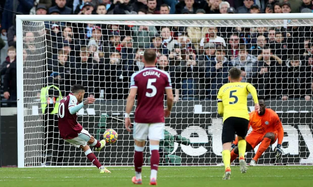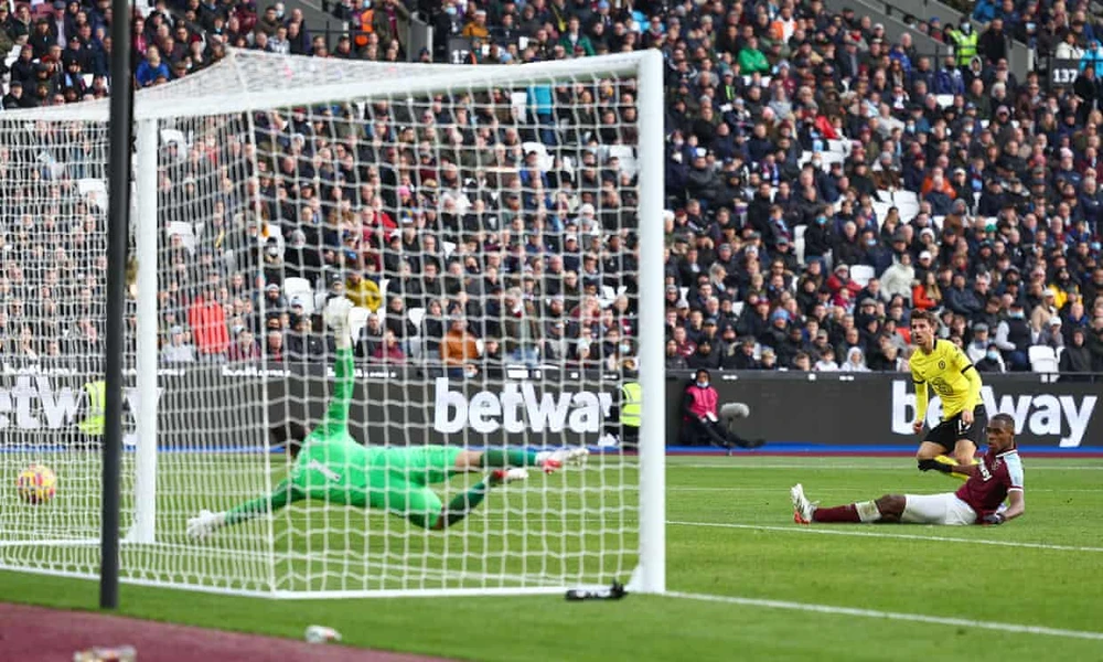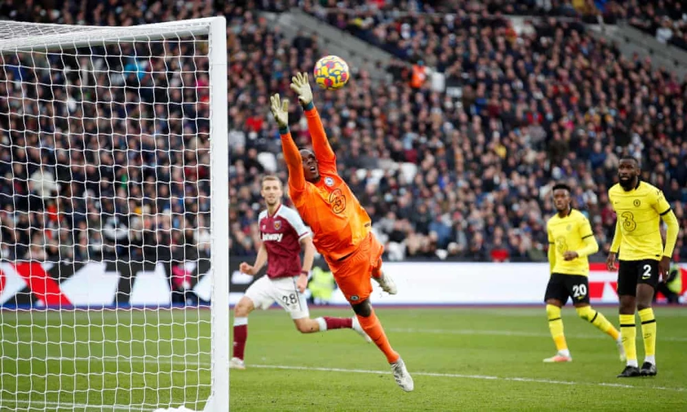 Dẫn trước chủ nhà West Ham, tuy nhiên sai lầm của thủ môn Mendy đã khiến Chelsea nhận bàn thua ở phút 40. Từ tình huống bị Jarrod Bowen áp sát trong vòng cấm, thủ môn Mendy đã phạm lỗi với số 20 của West Ham, khiến Chelsea phải chịu phạt đền. Trên chấm 11 mét, Lanzini dứt điểm thành công giúp West Ham có được bàn thắng gỡ hòa 1-1.
