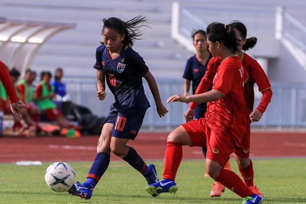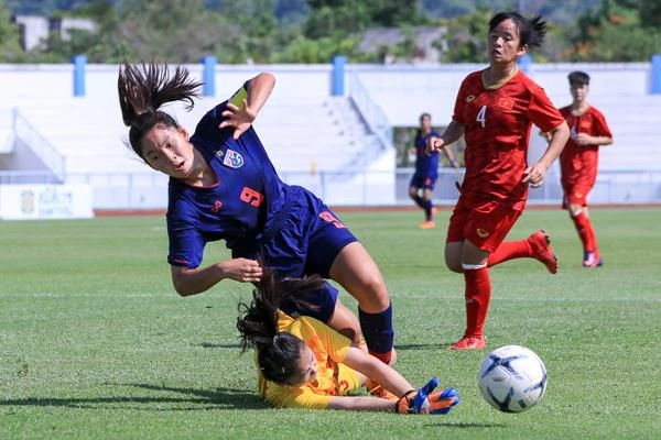 Các cô gái trẻ Việt Nam đã rất cố gắng trong cuộc đụng độ Thái Lan. Ảnh: AN.