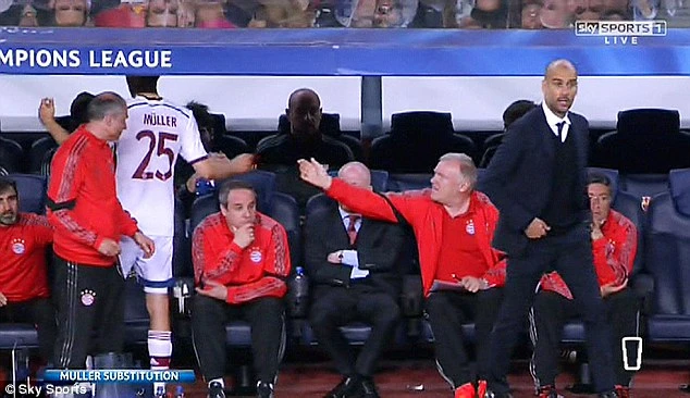 Theo Daily Mail thì Muller cãi cọ với Pep Guardiola vì không hài lòng vì bị thay ra sân. Trong khi đó không ít nguồn tin cho rằng tiền đạo người Đức đã bày tỏ sự tức giận với Pep Guardiola vìHLV người TBN đã bất lực trong việc khắc chế đội bóng cũ.