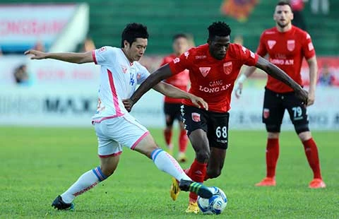 Long An trong trận thắng 1-0 trước Sài Gòn. Ảnh: XUÂN HUY