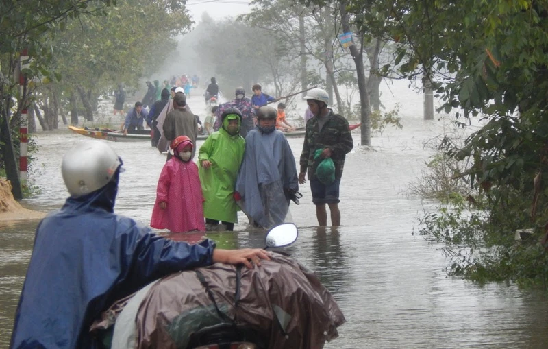 Nước ngập sâu, nhiều tuyến đường bị chia cắt. Ảnh: NGUYỄN DO