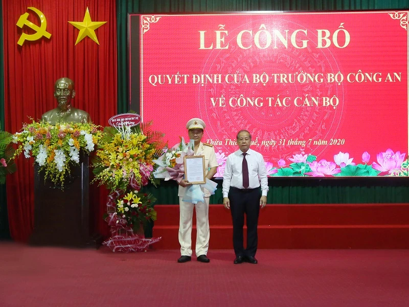 Tiếp đó, Bộ Công an công bố Quyết định của đồng chí Bộ trưởng Bộ Công an bổ nhiệm Thượng tá Nguyễn Thanh Tuấn, Phó Giám đốc Công an tỉnh giữ chức vụ Giám đốc Công an tỉnh Thừa Thiên Huế .