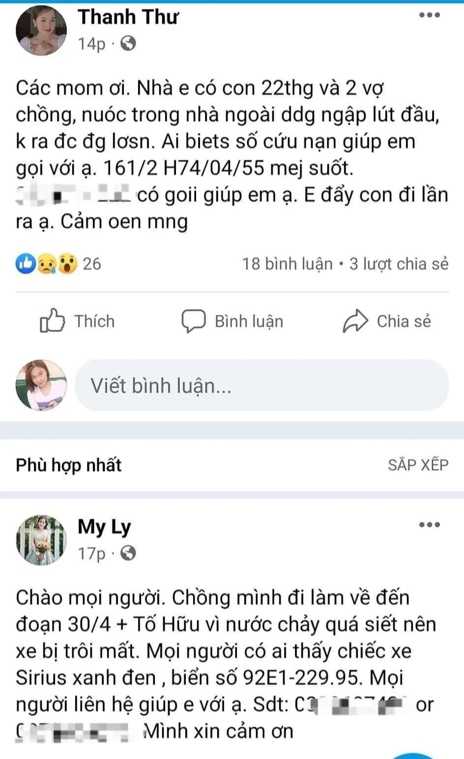 Trong đêm, nhiều người không kịp trở tay phải lên mạng xã hội kêu cứu.