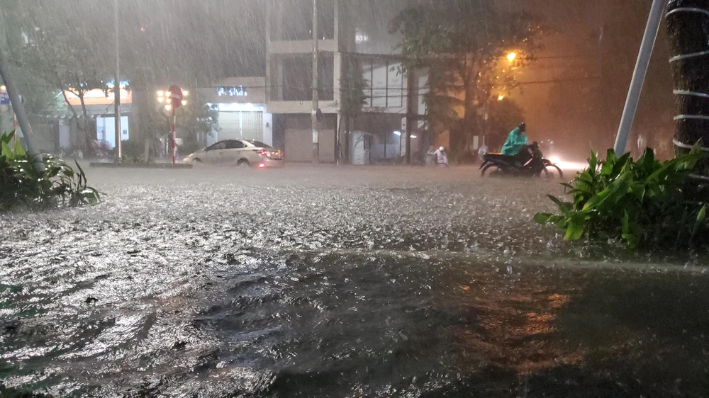 Tại TP Đà Nẵng, từ chiều tối ngày 14-10 xuất hiện mưa to đến rất to, nhiều tuyến đường bị ngập sâu từ 0,5-1m. Đến khoảng 20 giờ 30 phút, các tuyến đường 30/4, 3/2, Đống Đa, Trần Phú,... ngập sâu chưa từng có. Ô tô chết máy nằm la liệt giữa đường, hàng loạt xe mô tô bị chết máy phải dắt bộ.
