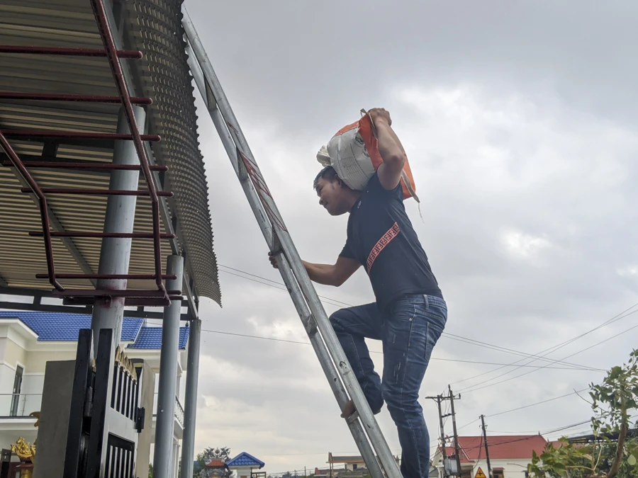 "Từ chiều tối qua chúng tôi đã mua bao bì và các trang thiết bị để sáng nay chằng chống nhà cửa, để đảm bảo an toàn chống bão"- ông Trần Văn Long (42 tuổi, xã Quảng Công, huyện Quảng Điền) nói.