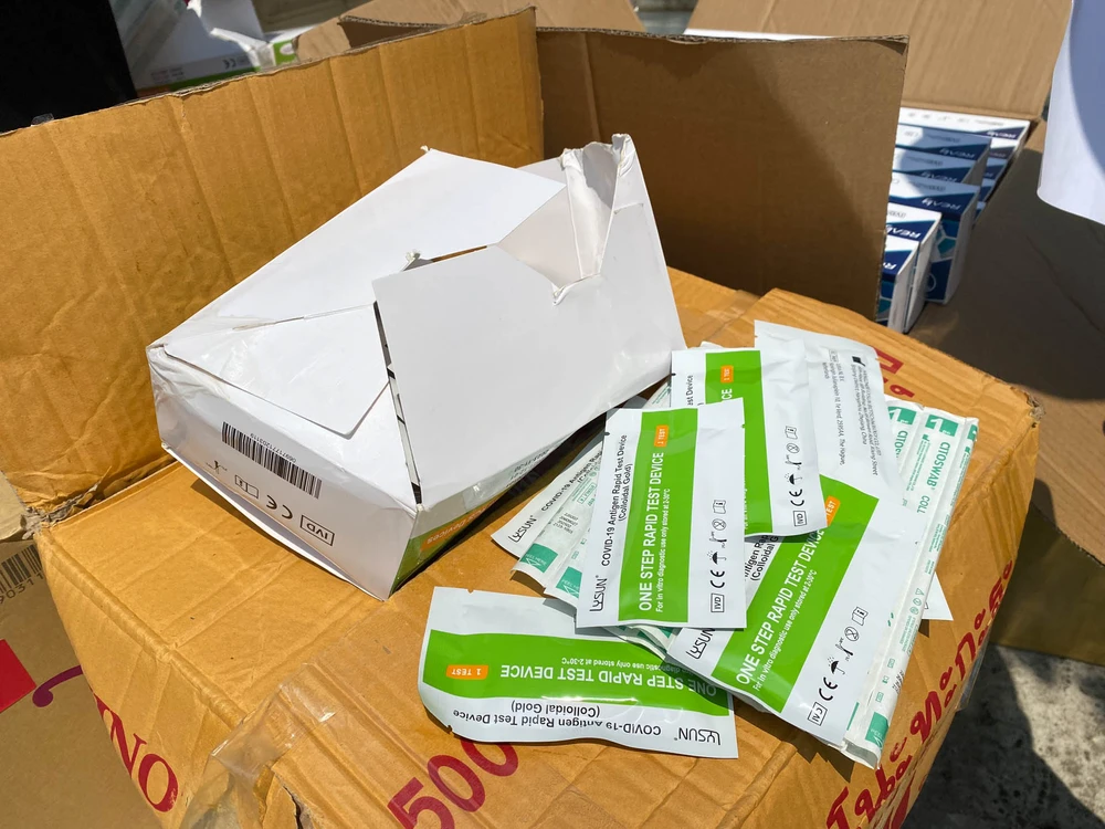 Lực lượng chức năng phát hiện 6.000 kit test COVID-19 không rõ nguồn gốc. Ảnh: ND.
