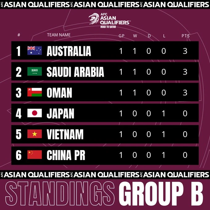 Trên thực tế, việc đội tuyển Nhật để thua Oman 0-1 ở lượt trận đầu là kết quả gây sốc rất lớn trong bảng A và B vừa qua. Trong khi đó, TQ thua Úc 0-3 là điều được dự báo từ trước. Tuyển TQ có nửa đội hình là cầu thủ nhập tịch nhưng vài năm qua thi đấu khá tệ hại, thiếu tinh thần chiến đấu.