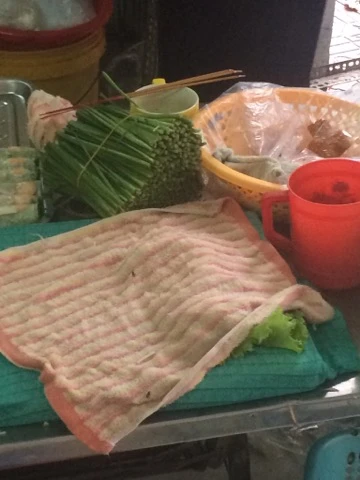 Bày bán thức ăn không đảm bảo, có cả ruồi bâu, đốt nhang ngay cạnh món gỏi cuốn. Ảnh: Nguyên Võ