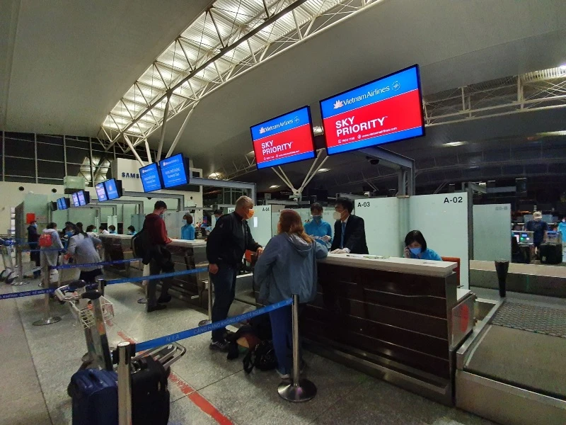 Hành khách Đức và châu Âu làm thủ tục để lên máy bay hồi hương. Ảnh: VNA