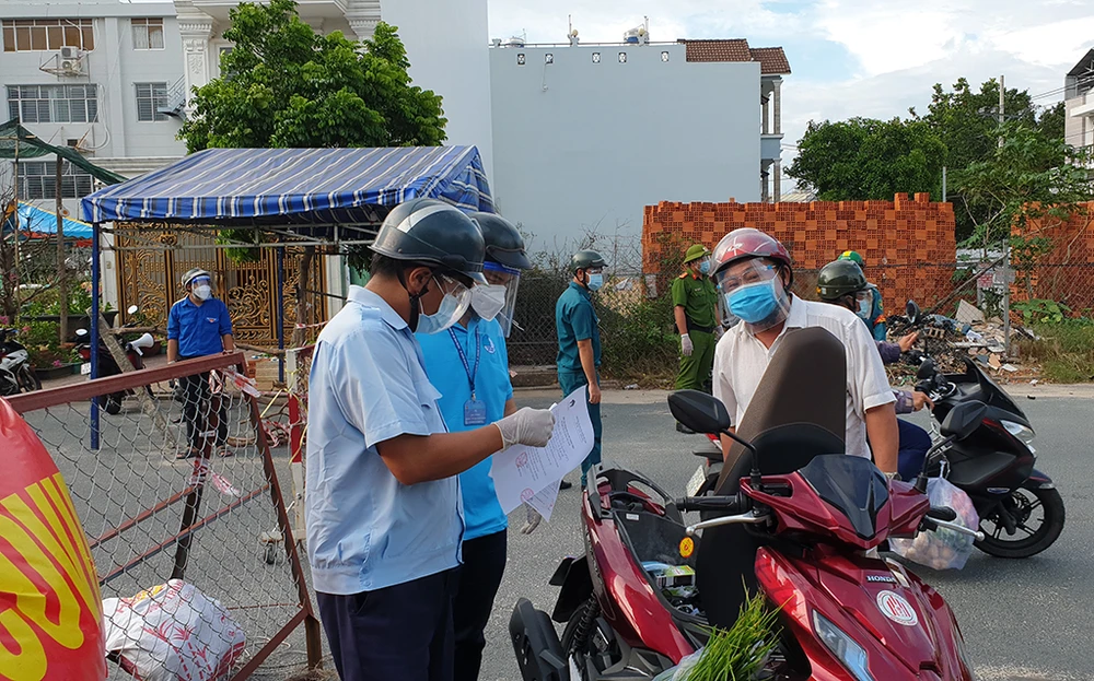 Đại diện lãnh đạo UBND phường Tân Hưng Thuận cũng cho biết việc lập chốt, thành lập các tổ công tác tuần tra, kiểm soát thường xuyên trên địa bàn để đảm bảo khu phố cách ly với khu phố, phường cách ly với phường, quận cách ly với quận… Ảnh NT