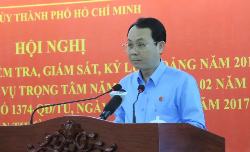 Ông Nguyễn Văn Hiếu - Chủ nhiệm Ủy ban Kiểm tra Thành ủy TP.HCM báo cáo tại hội nghị. Ảnh: TÁ LÂM