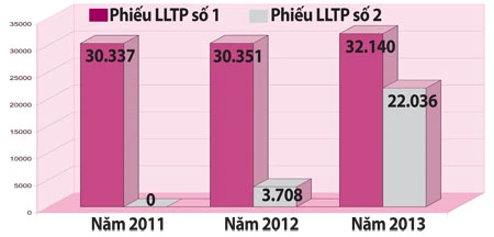 Cán bộ tư pháp đã phải căng mình cấp phiếu LLTP số 2 tăng đột biến trong năm qua cho người dân. Nguồn: Sở Tư pháp TP.HCM