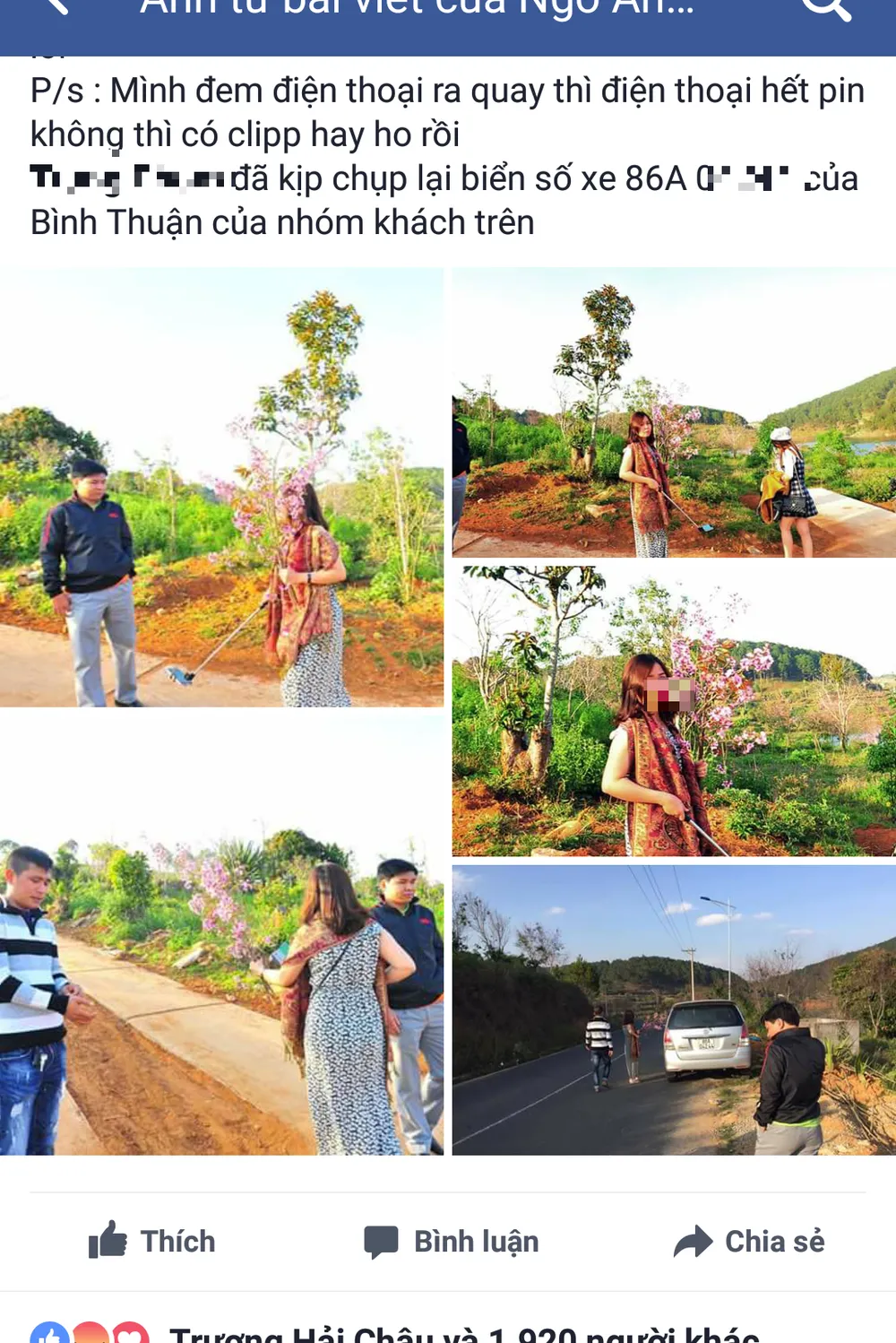 Anh N. A. T là người đưa hình ảnh kèm nội dung lên trang facebook cá nhân của mình. Theo đó anh T cho biết vào khoảng 16h30’ ngày 4-3, nhóm của anh xuống Khu du lịch hồ Tuyền Lâm Đà Lạt để chụp hình hoa mai anh đào đang nở rộ ở đây.