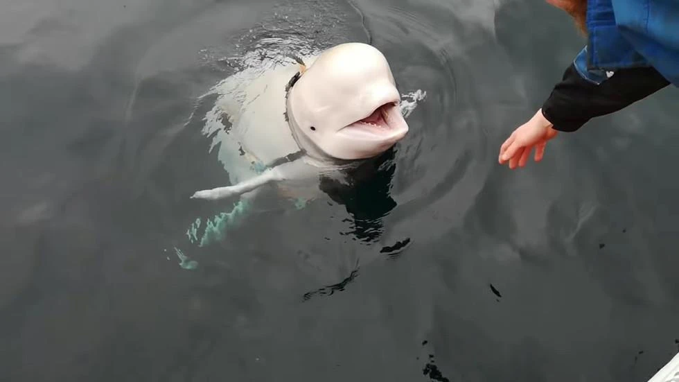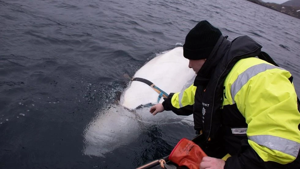 Cuối tháng 4, ngư dân tại khu vực Finnmark ở ngoài khơi phía bắc Na Uy phát hiện một con cá voi trắng. Jorgen Ree Wiig, nhà sinh học biển làm việc với Tổng cục Thủy hải sản Na Uy ngày 26-4 loại bỏ một chiếc vòng được gắn vào nó. Chiếc vòng này có ngàm để gắn camera và dòng chữ "Thiết bị St. Petersburg" được in trên chốt nhựa, theo hãng tin AFP.