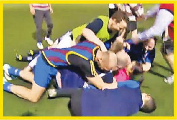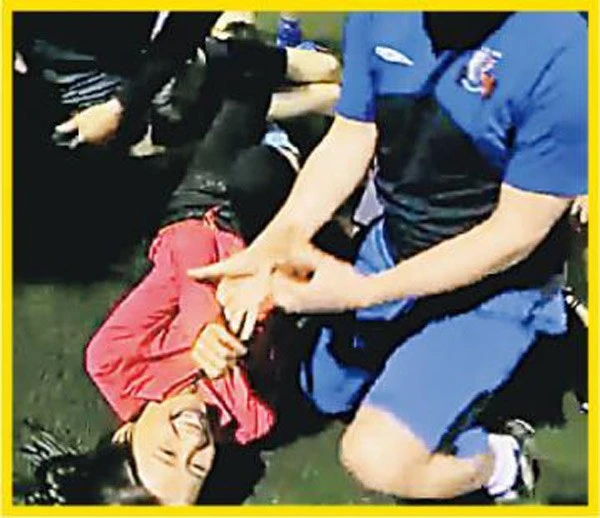 | Hình ảnh được cho là Huỳnh Thúy Như bị các cầu thủ Anh sờ ngực. |
