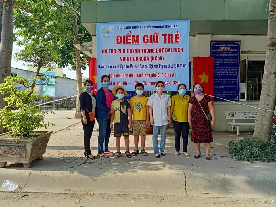 Mới đây, trên mạng xã hội lan truyền hình ảnh về điểm giữ trẻ do Hội Liên hiệp phụ nữ phường Bình An, quận 2 mở ra. Thông tin trên pano đặt trước điểm giữ trẻ cho biết điểm này hỗ trợ phụ huynh trong đợt dịch Corona, dành cho trẻ em từ lớp 1 trở lên, là con cán bộ, hội viên phụ nữ phường.