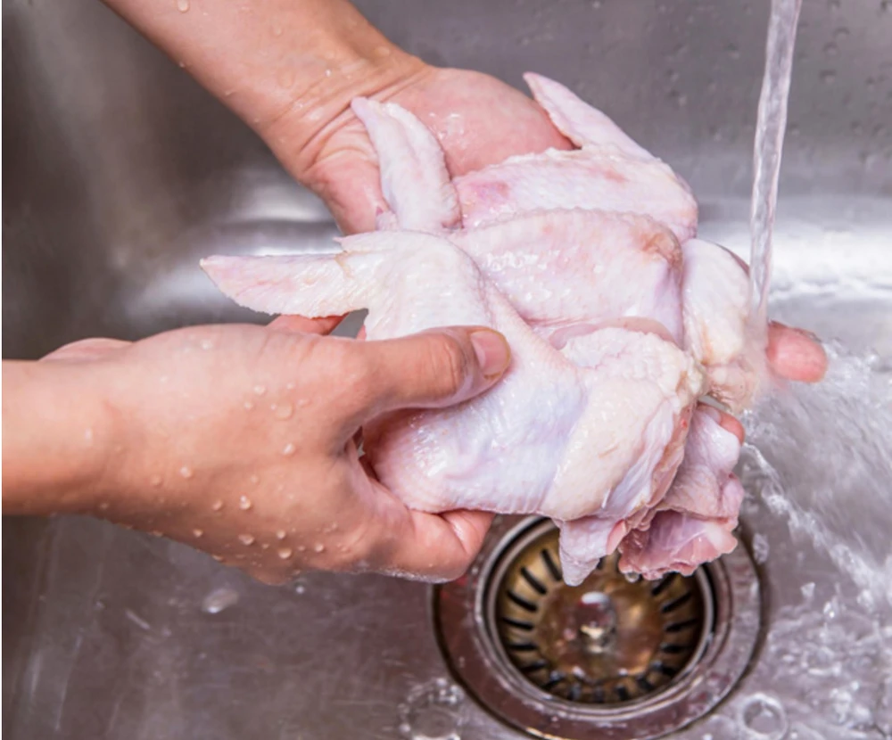 Nên rửa thịt gà bằng nước sạch trước khi chế biến. Ảnh: Internet